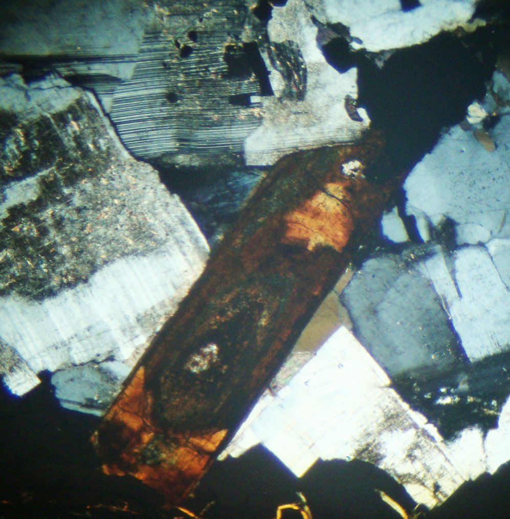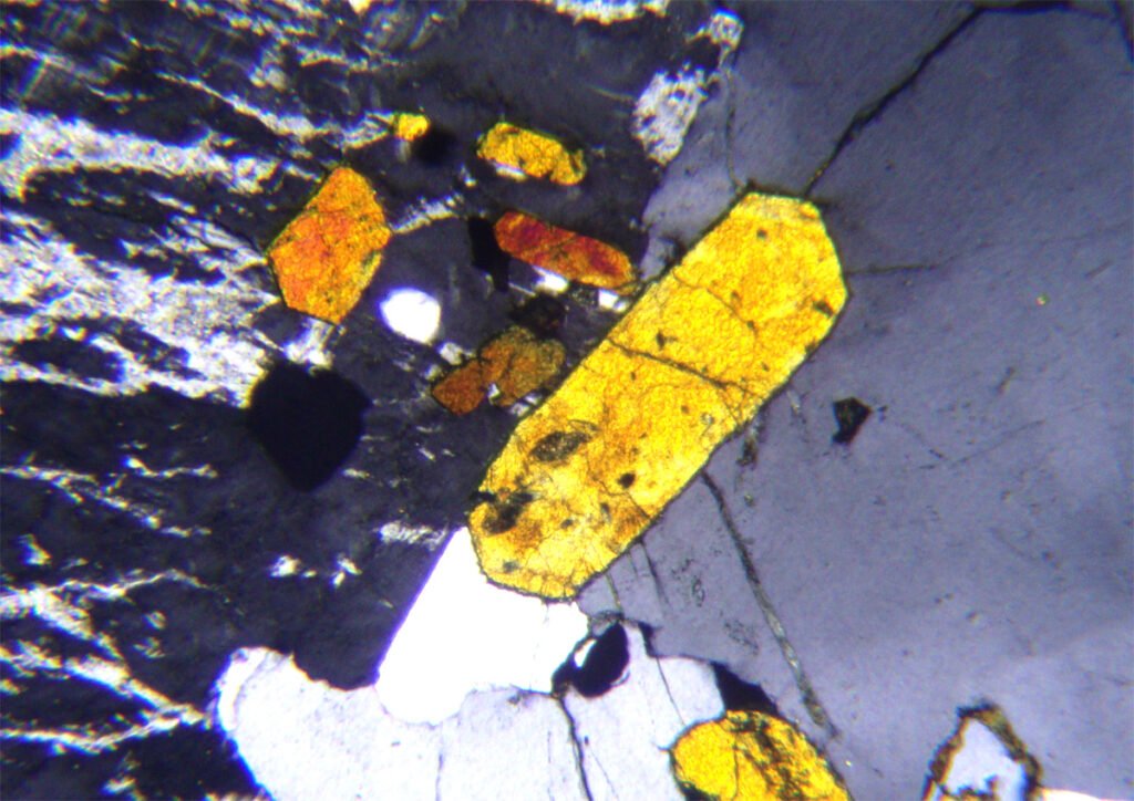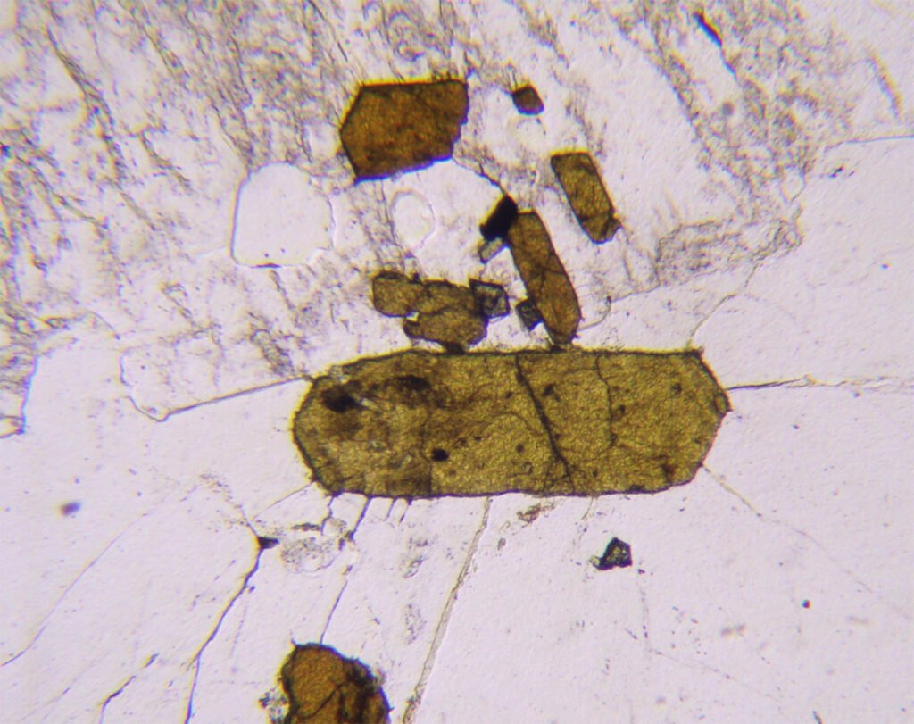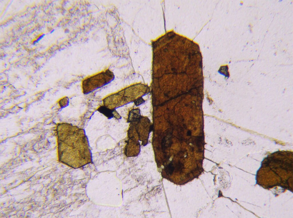 When allanite occurs as an inclusion in biotite, chlorite and hornblende, dark halos form around the allanite grains.