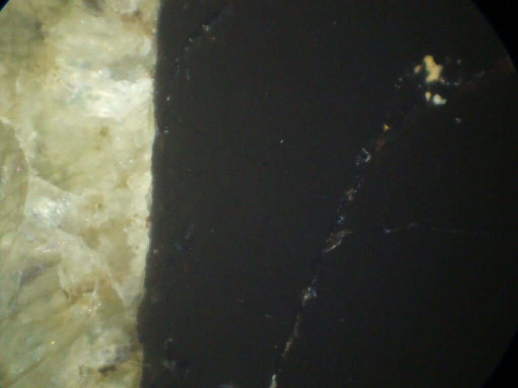 Internal reflections: Generalized, very dark and uniform, forming a very homogeneous, almost black surface. At some points, such as fractures, boundaries and holes, some dim reflections of dark reddish brown color occur.