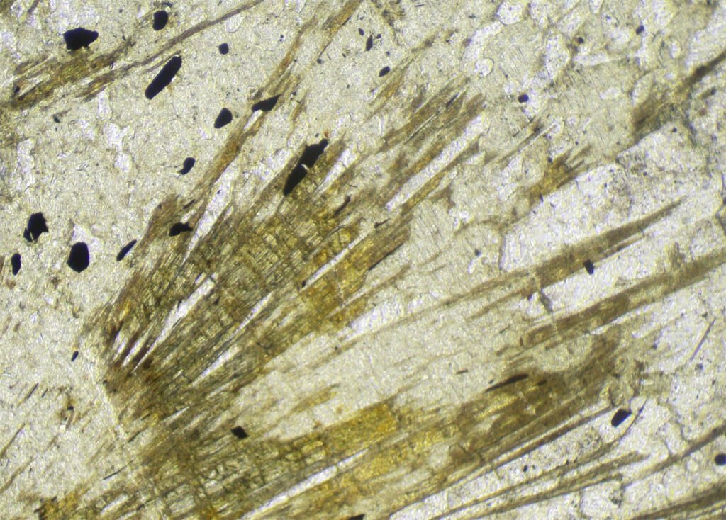 Reflected light microscopy is not the recommended analytical method for the identification of anthophyllite. However, it is important to make a polished thin section or a polished section to identify the opaque minerals that occur associated with anthophyllite, like magnetite.