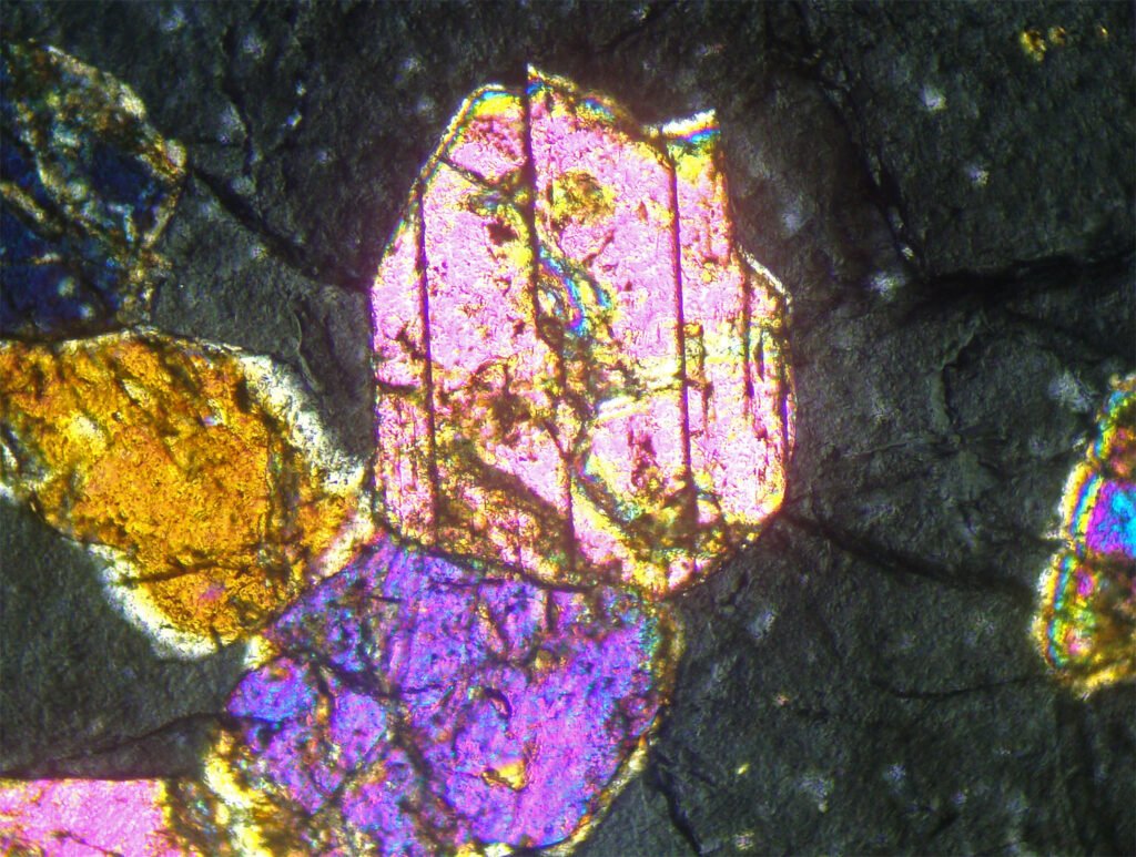 May be confused with: distinguishing between the various clinopyroxenes (augite, diopside and pigeonite) can be very difficult to impossible under the petrographic microscope. Some authors report that the distinction between clinopyroxenes can only be performed with the aid of an universal stage. What facilitates identification is knowledge of paragenesis (rock type, associated minerals). In some cases the description only uses the term “clinopyroxene” for these minerals; their precise identification must be carried out with other analytical methods.