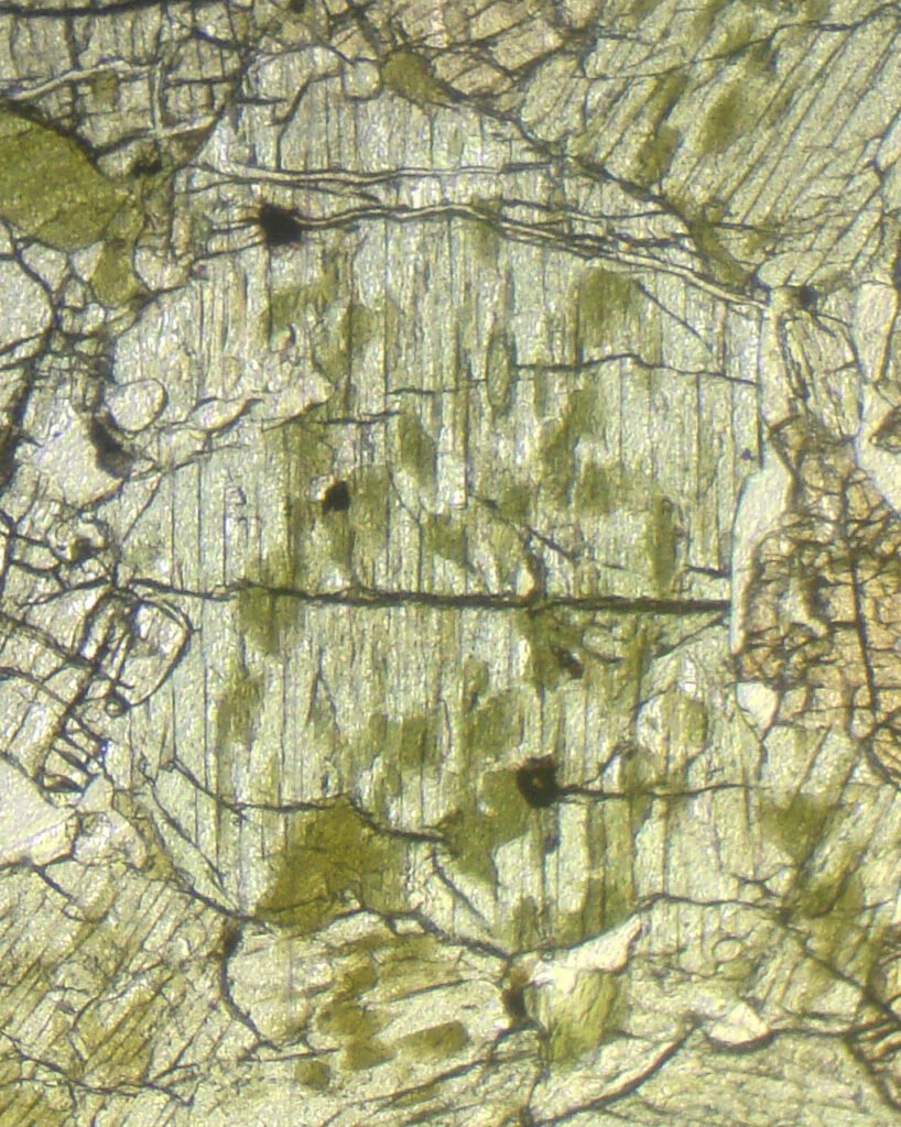 May be confused with: amphiboles and other pyroxenes, whose behavior is very similar. It is not possible to recognize diopside under a Reflected Light microscope. At most it is possible to recognize the mineral as mafic, most likely pyroxene.