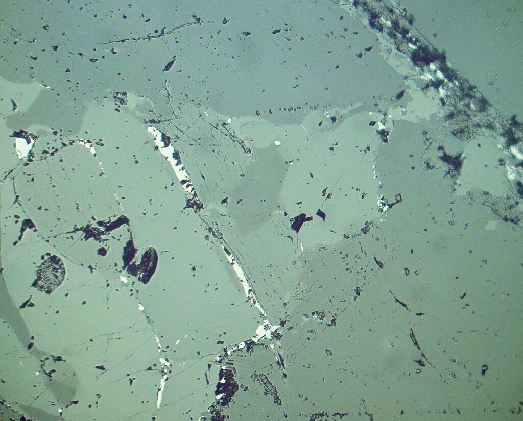 Reflected light microscopy is not the recommended analytical method for the identification of diopside. However, it is important to make a polished thin section or a polished section to identify the opaque minerals that occur associated with diopside.
