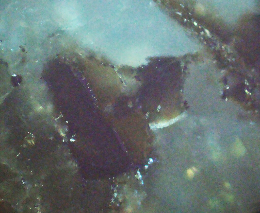 Internal reflections: Generalized, usually very dark. At the grain edges and in very fine grains, reflections are dark green to light yellowish green.