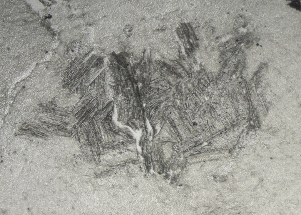 Habit: Tabular or laminar crystals, often deformed. Rarely fibrous or porphyroblastic with “sieve texture”