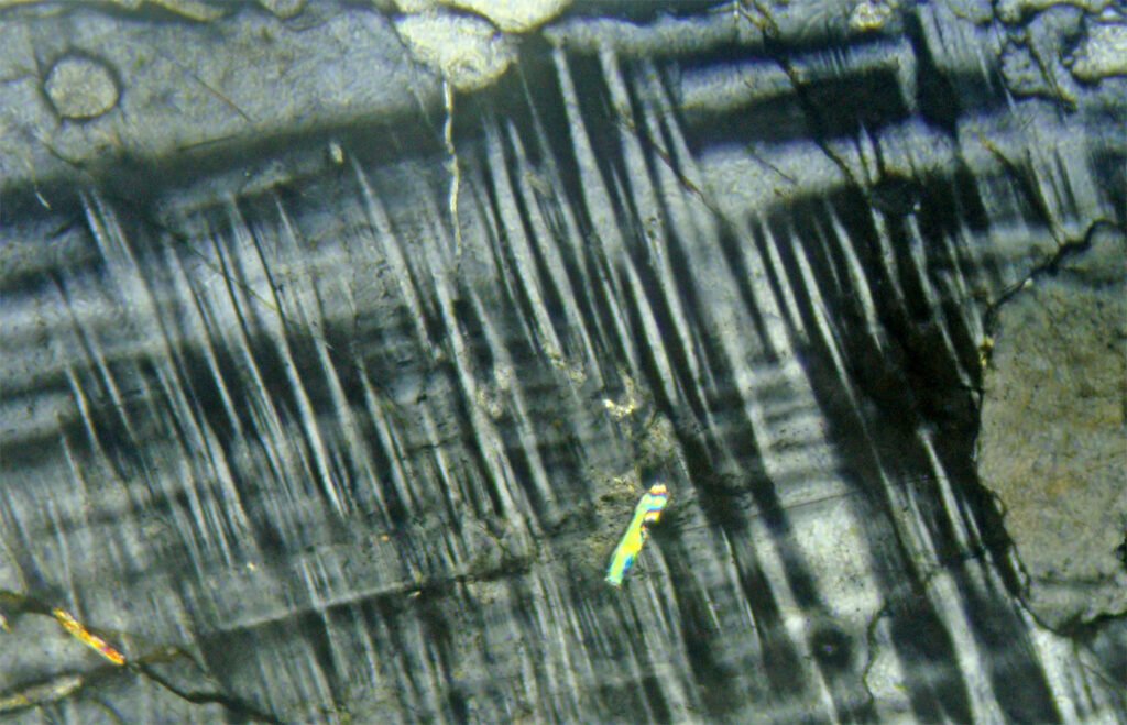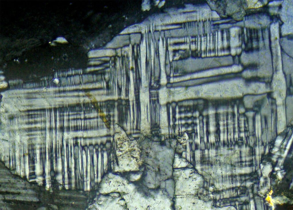 Due to the low relief of the microcline, these cleavages are usually not visible under a microscope.
