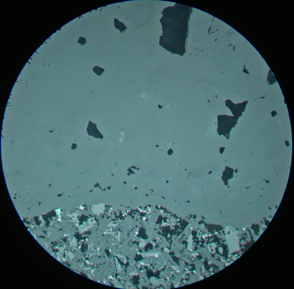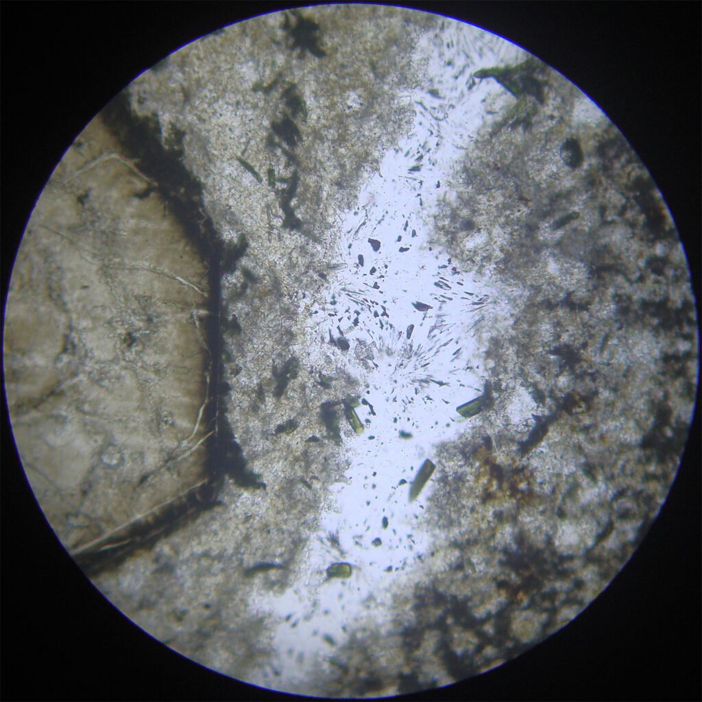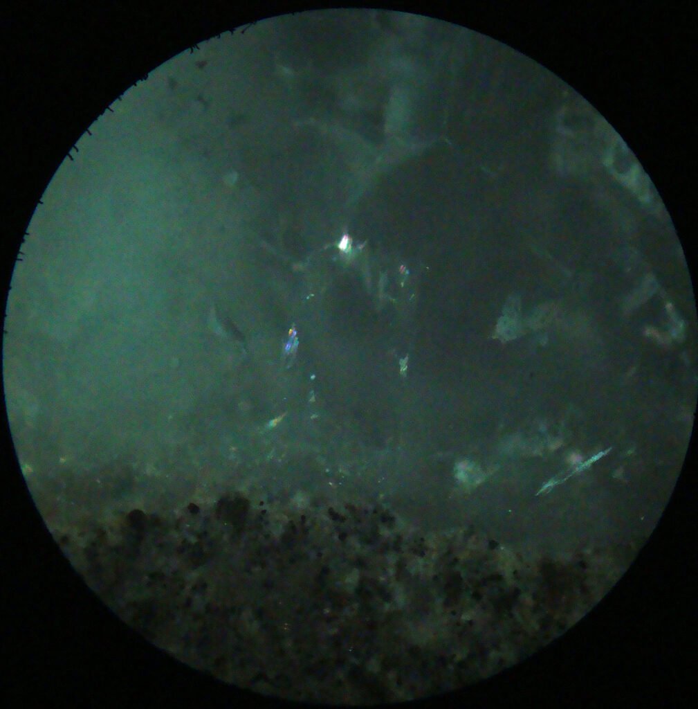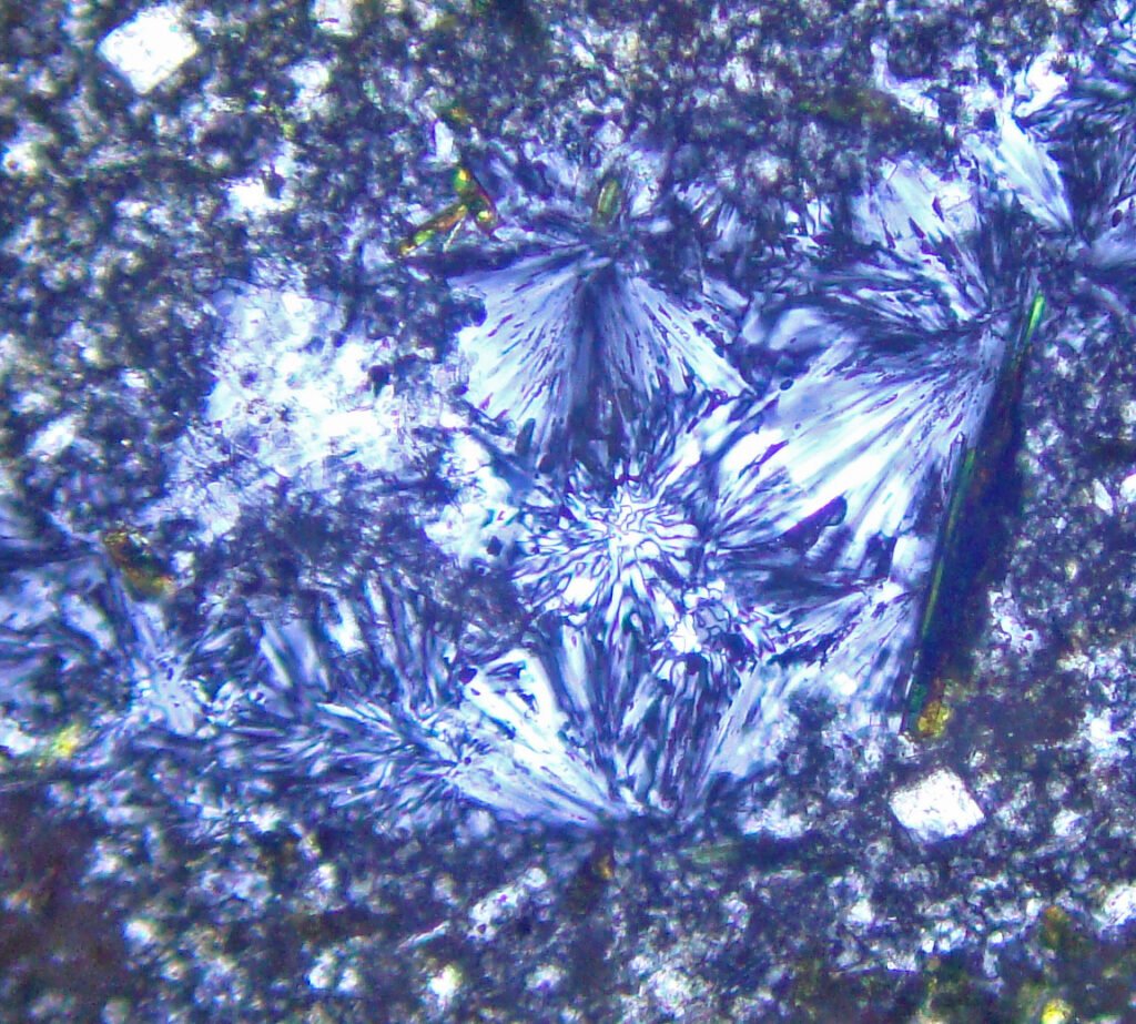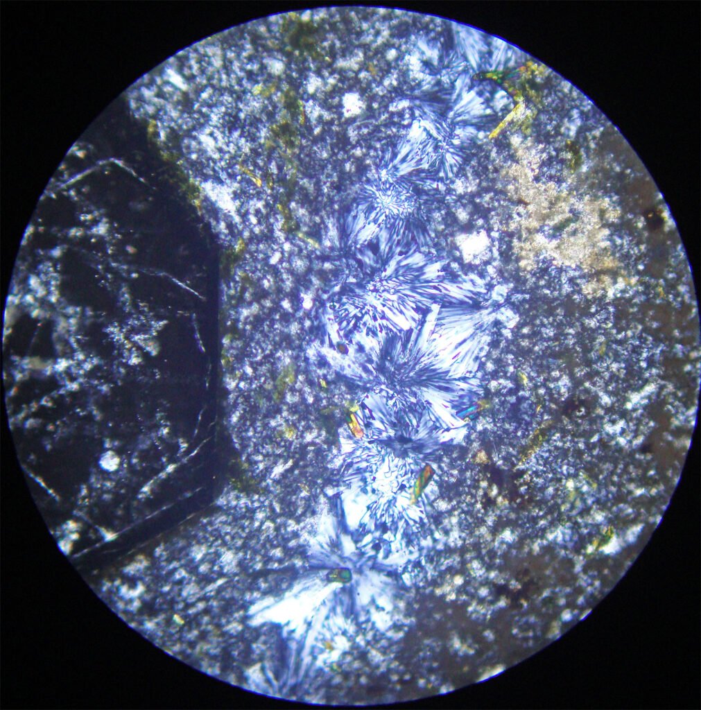 Sample preparation: natrolite accepts polishing very easily, despite cleavages and long prism habit. Even with a quick polish, it ends up with a polishing quality much superior to that of quartz and feldspars, for example.