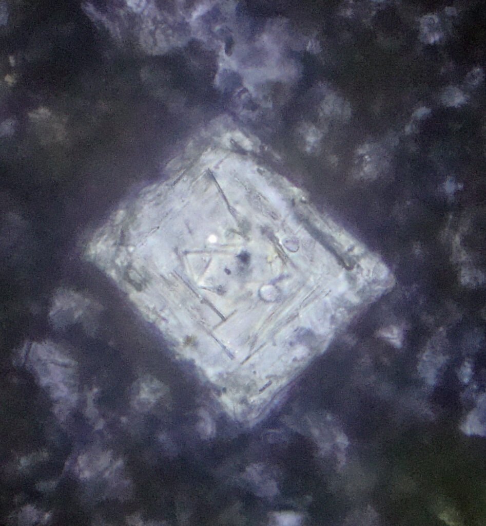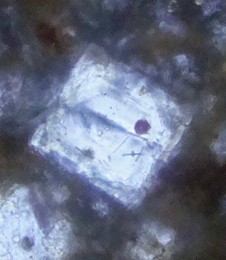 May be confused with: many other light colored transparent minerals. It is not possible to identify natrolite under Reflected Light. In some cases it is possible to observe some prismatic features and even some square basal sections, but this is not the rule and it is not a common diagnostic feature.