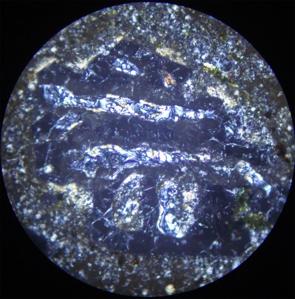 Reflected light microscopy is not the recommended analytical method for the identification of natrolite. However, it is important to make a polished thin section or a polished section to identify the opaque minerals that occur associated with natrolite, like copper.