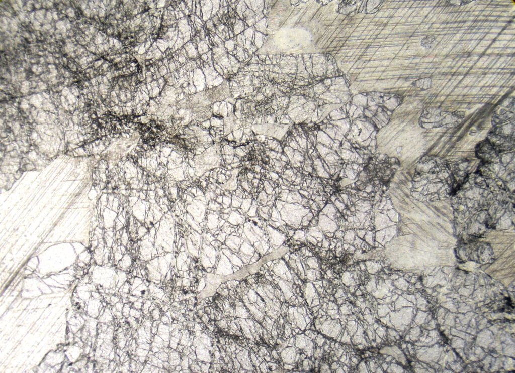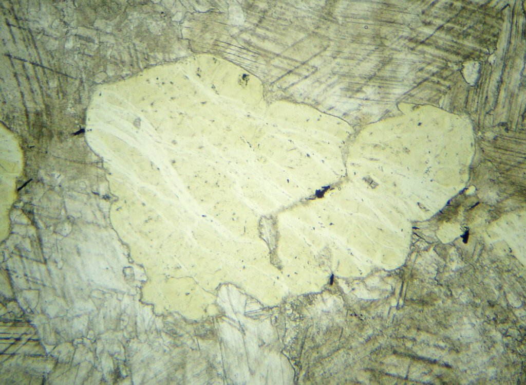 Sample preparation: olivine acquires a good polish with some ease. When altered, on the other hand, which is very common, the polish is of poor quality and persistent grooves are difficult to eliminate.