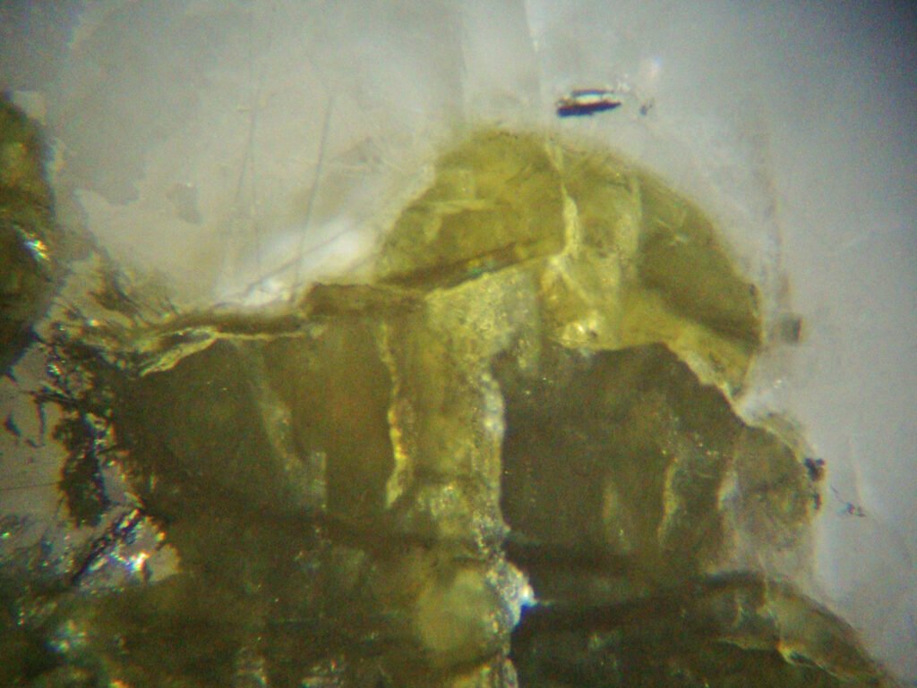 Internal reflections: Generalized in the color of the mineral in hand specimen, which can be in yellow, brownish or greenish tones, always with low luminosity.