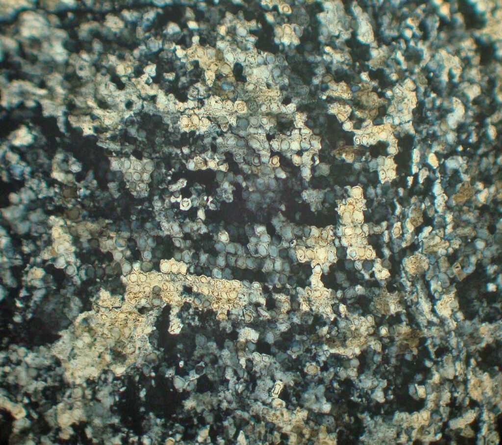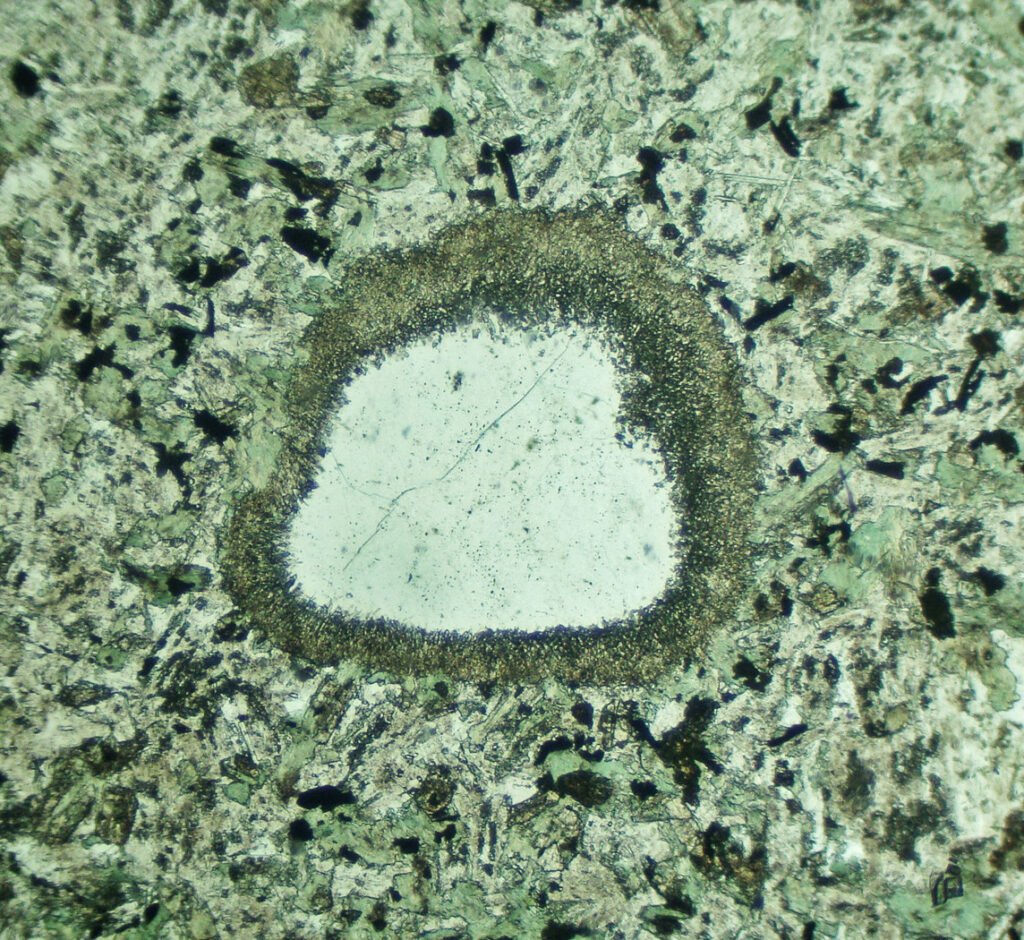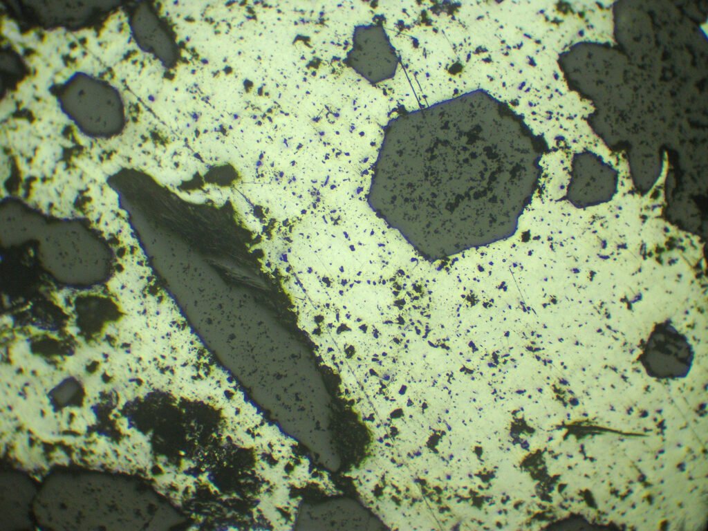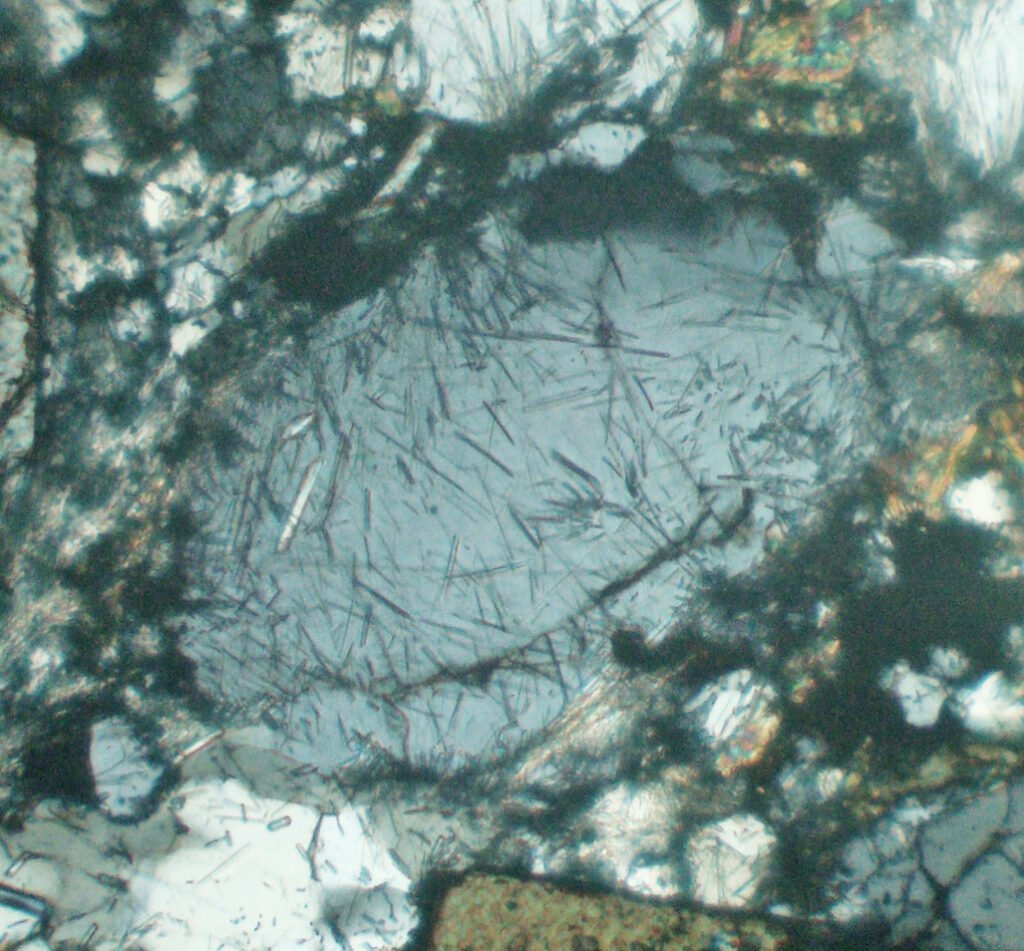 Inclusions of very fine rutile needles can be seen very well in the polished sections.
