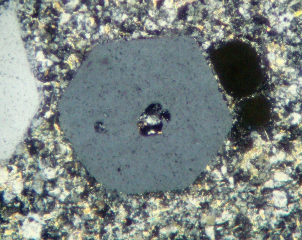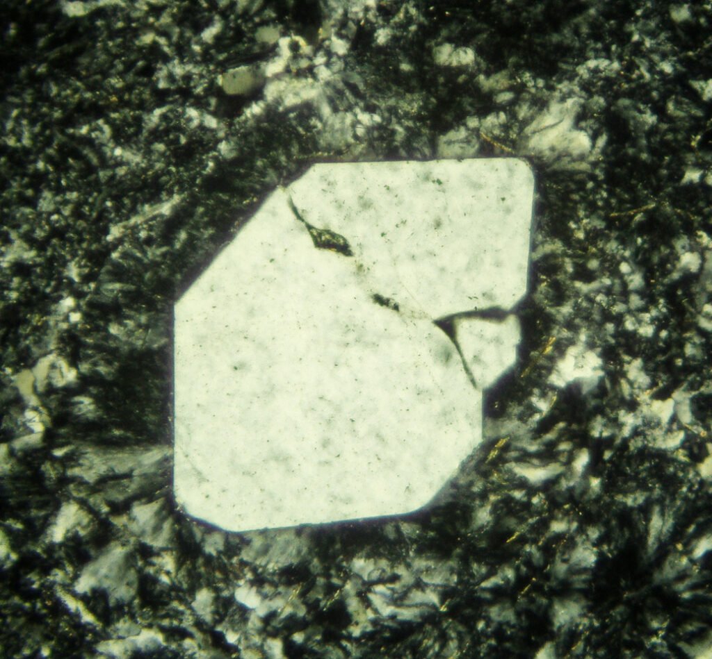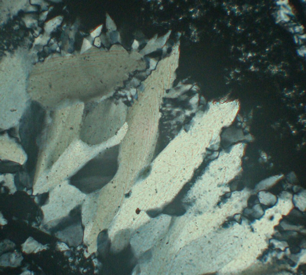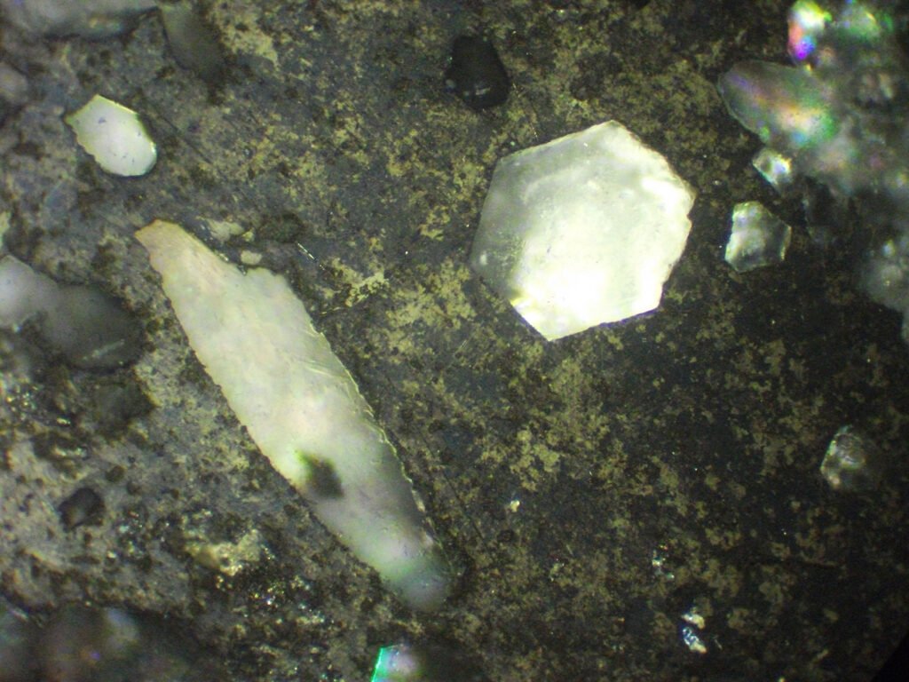Reflection color: Dark gray, similar to feldspars. Lighter than the color of amphibole and pyroxene and much lighter than the color of biotite.