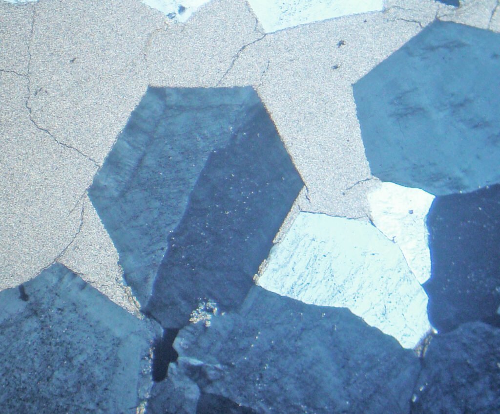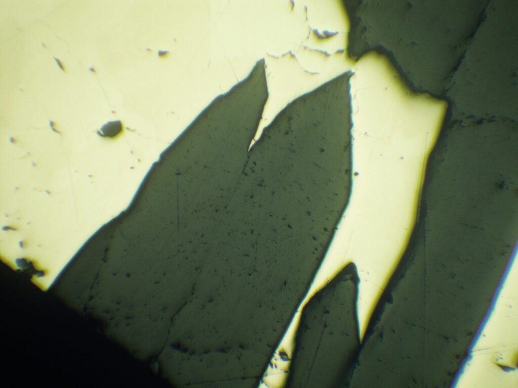 Cleavage: Poor cleavages in {10-11}, {01-11} and {10-10}, which are not visible under the microscope. In addition, it has a rhombohedral partition, which is also not visible under the microscope.