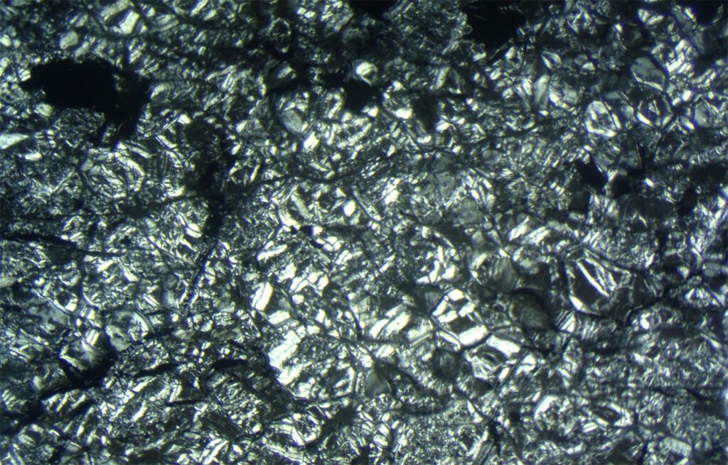 Cleavage: Antigorite: {001} perfect; lizardite: basal cleavage; chrysotile: fibrous, has no cleavage. Usually the cleavage of antigorite and lizardite is not visible under the microscope.