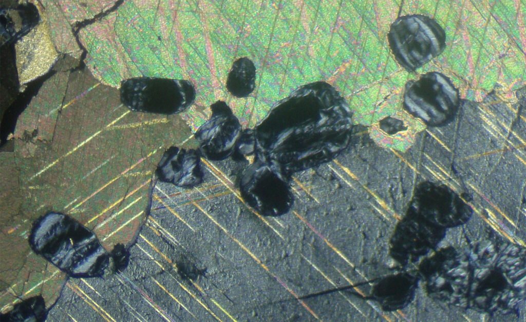 Reflection color: Dark gray, like quartz and feldspar. It is not as dark as pyroxenes, amphiboles and chlorite.
