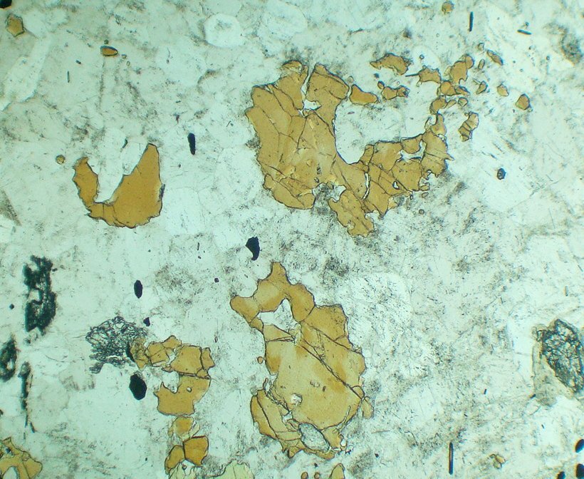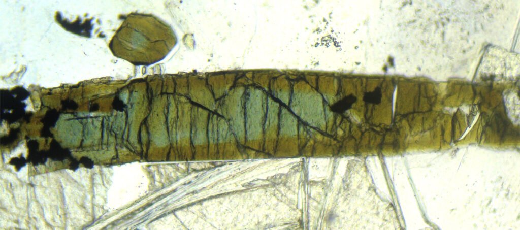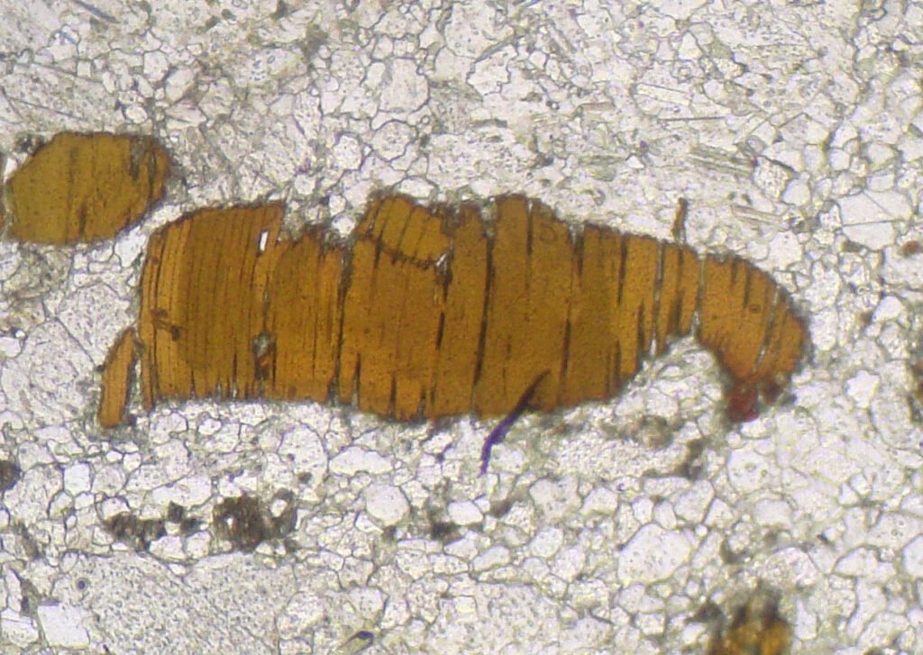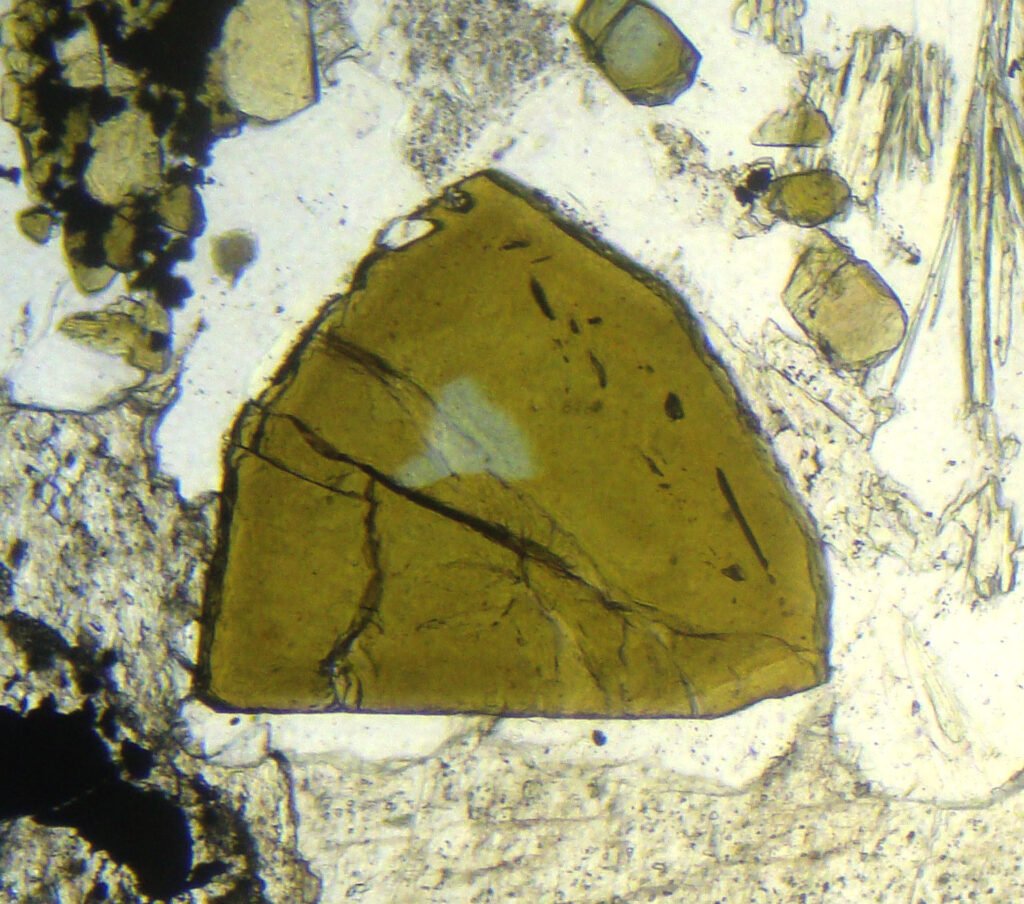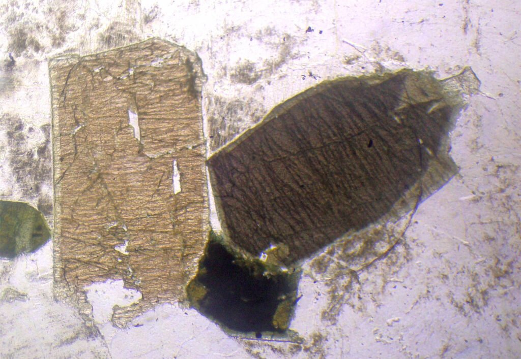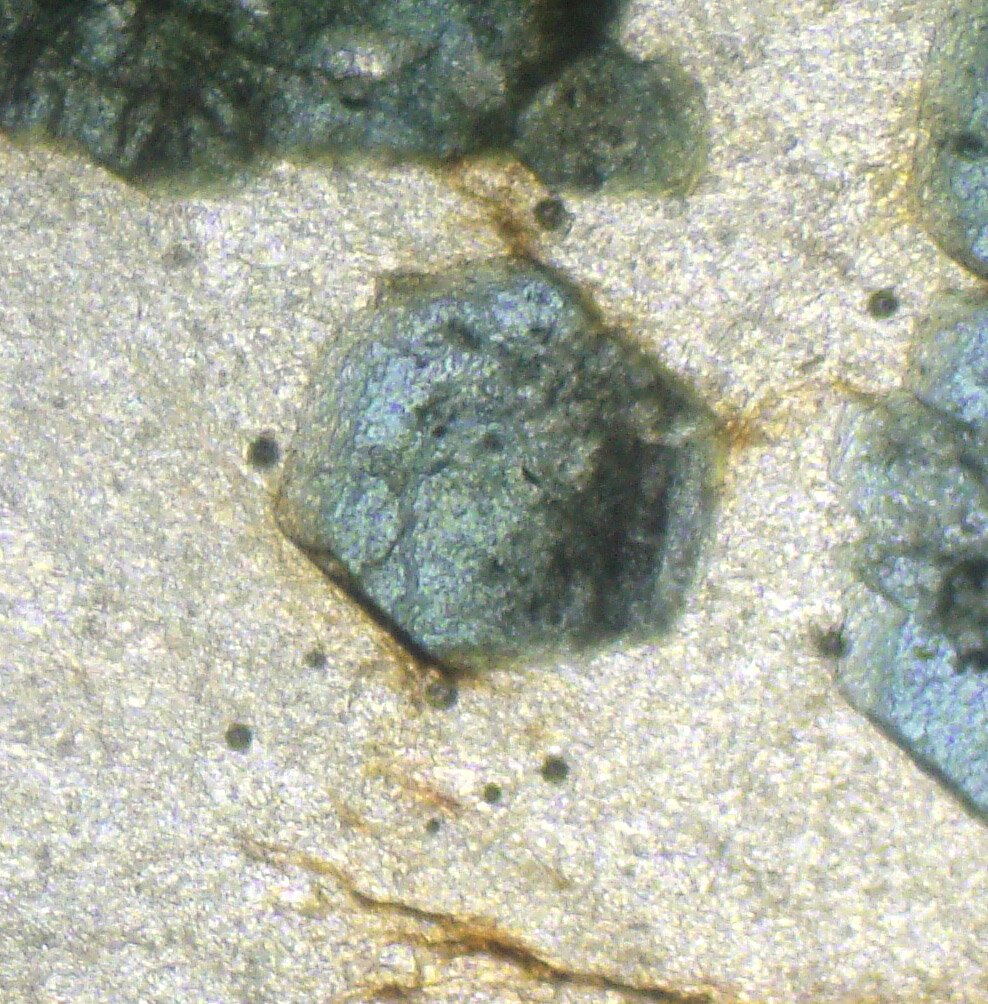 May form radial aggregates of microcrystals (“suns”). It can form completely xenomorphic (anhedral) grains, which make it difficult to recognize.