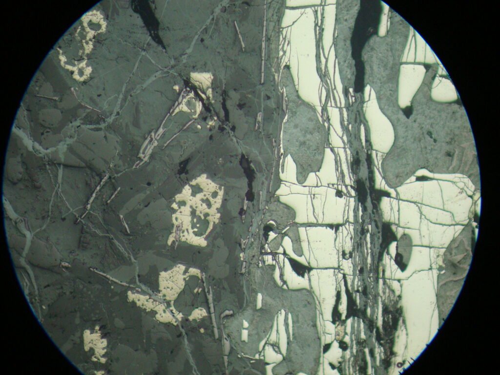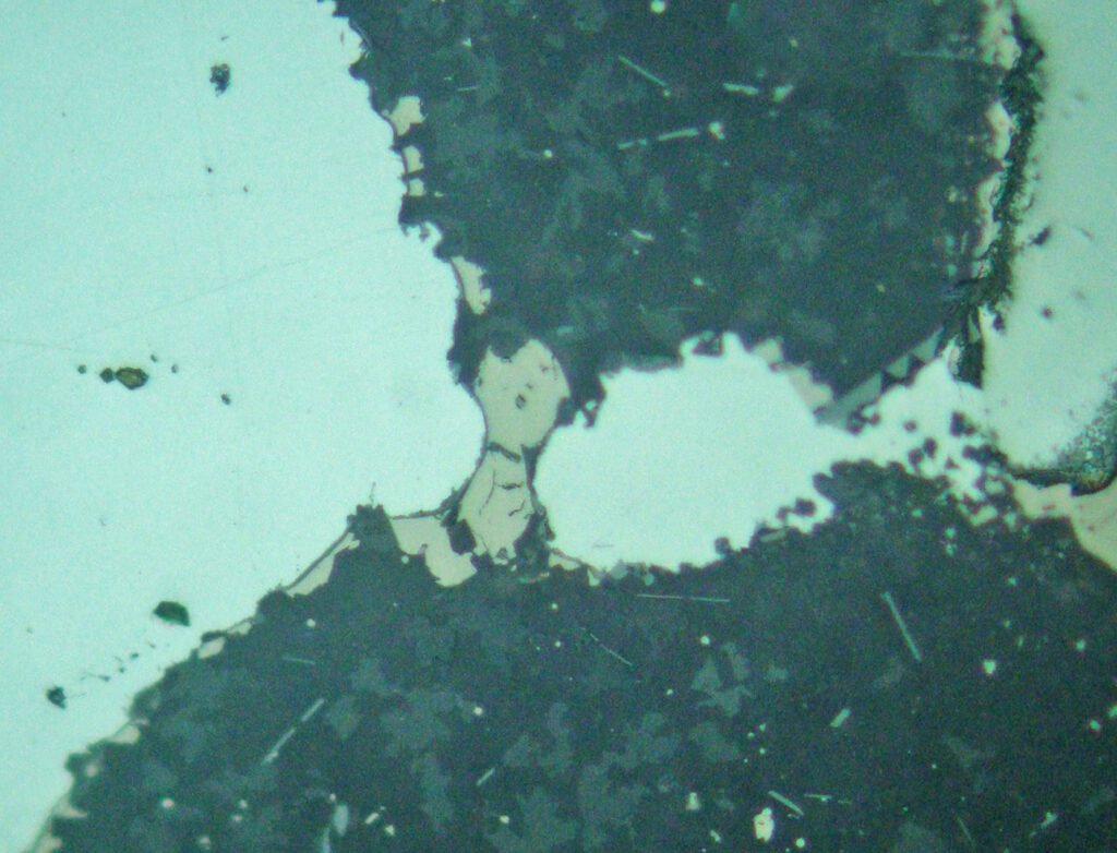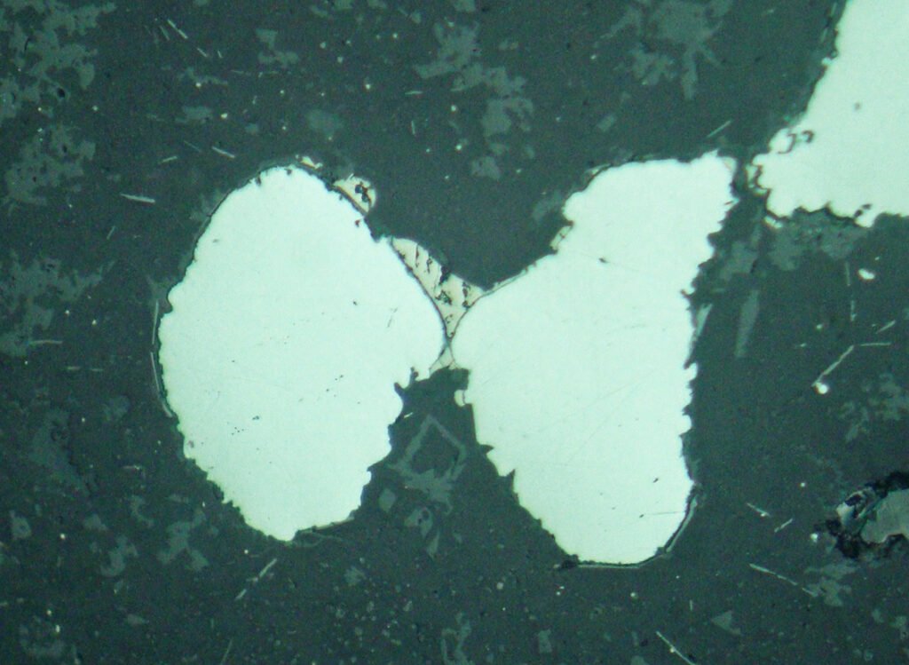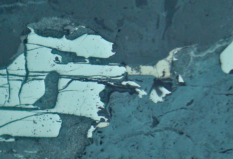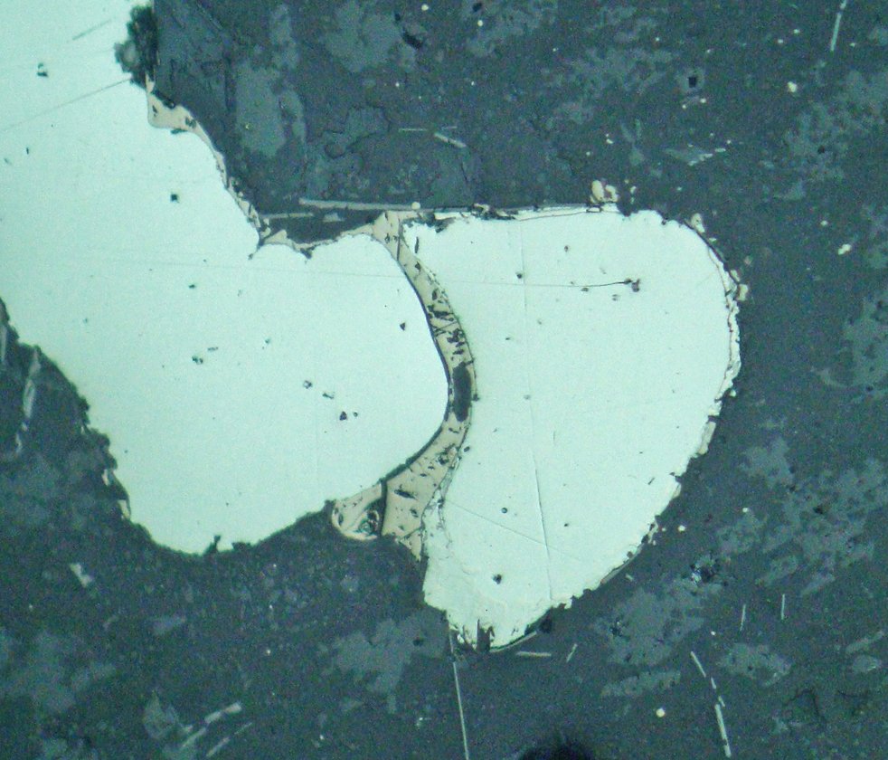 Sample preparation: Due to its low hardness, troilite requires careful polishing and some polishing grooves are quite persistent, but good polishing is possible, except for the larger grains, as is also the case with pyrrhotite.